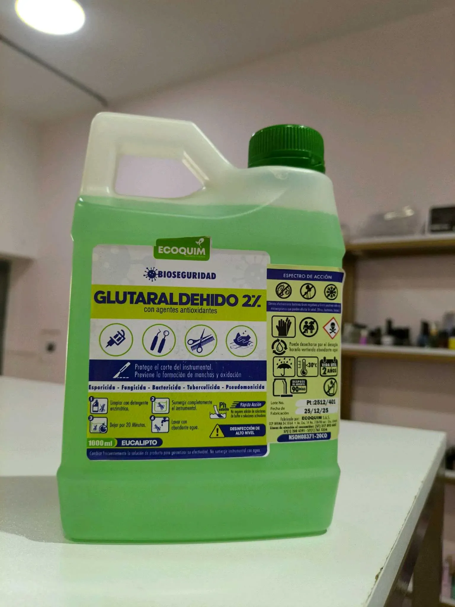 Glutaraldehído 2% es una solución desinfectante de alto nivel, de acción rápida. Tiene actividad esporicida, fungicida, bactericida, tuberculicida y pseudomonicida. Registro sanitario INVIMA.